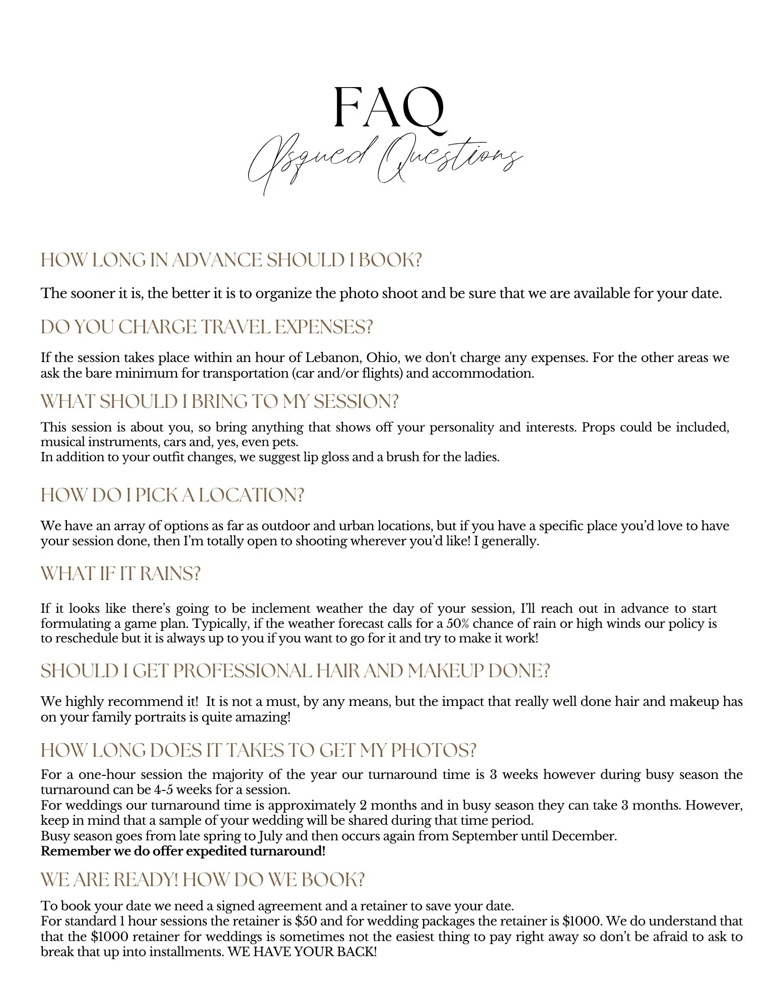Jordan will answer within the hour ( as long as the sun is up!) and collect some info and learn a bit about you. If you’d like, we can also set up a quick video call or in-person coffee meet-up so you can meet both Sarah + Jordan — your husband-and-wife photography team.